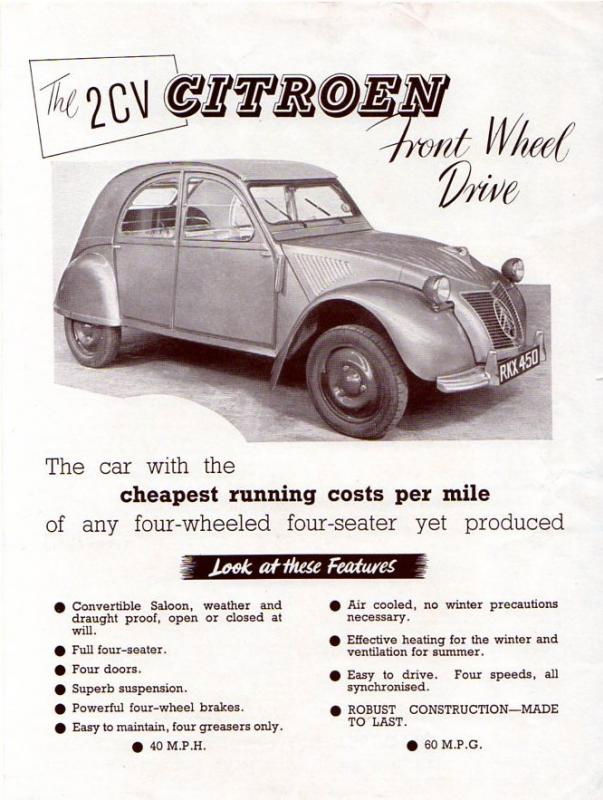 In April 1954, William Boddy of Motor Sport was so taken with the Citroën 2CV he wrote ‘Certainly from now on I shall look with scorn at cars of low power output which employ heavy lumps of cast-iron surrounded by water for engines’.