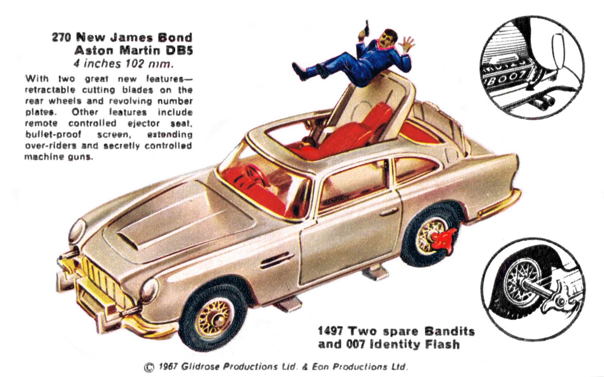 In July 1965, the nation’s toy shops stocked a new type of die-cast model car – ‘Corgi Toys - ‘The One’s With Windows’. At a time when rival products lacked such a feature, this was important news indeed for the discerning consumer. Corgi cars also came in individual illustrated boxes while Dinky Toys supplied their products in trade-packs to retailers.