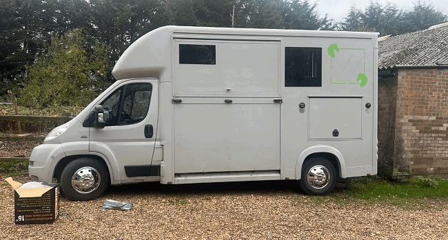 Horseboxes with a payload of 7.5 tonnes or above are usually designed so that the horses travel herringbone in the horse area with the partitions sideward.